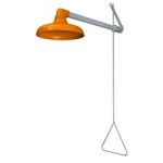 - Water flow is activated by pulling down on bright yellow eye wash tray.