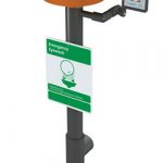 Application: Free standing, pedestal mounted eyewash. Constructed entirely in stainless steel. Ideal for use in highly corrosive environments and cleanroom applications. Two GS-Plus™ spray-type outlet heads deliver a flood of water for rinsing eyes.