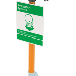 Application: Free standing, pedestal mounted eyewash with stainless steel bowl. Two GS-Plus™ spray-type outlet heads deliver a flood of water for rinsing eyes.