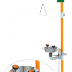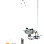 Application: Combination eye/face wash and shower safety station. Furnished with auxiliary drench hose for rinsing user’s eyes, face or body. Eye/face wash features a stainless steel bowl with two large FS-Plus™ spray-type outlet heads that deliver a flood of water for rinsing eyes and face.